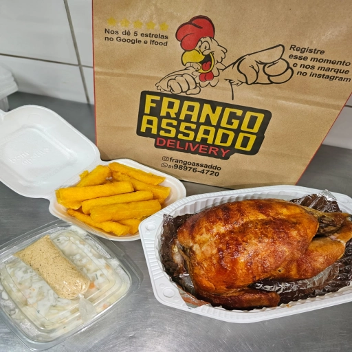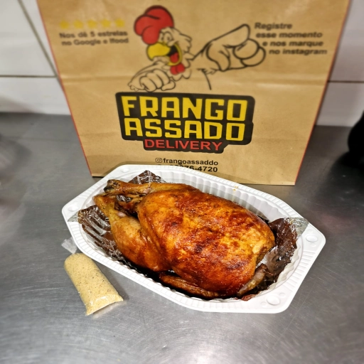 Delicioso frango inteiro assado com nosso saboroso tempero especial + Farofa